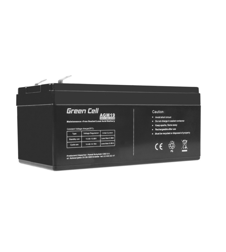 Baterie Green Cell 12V 3.3Ah (4.6mm) 3300mAh VRLA AGM