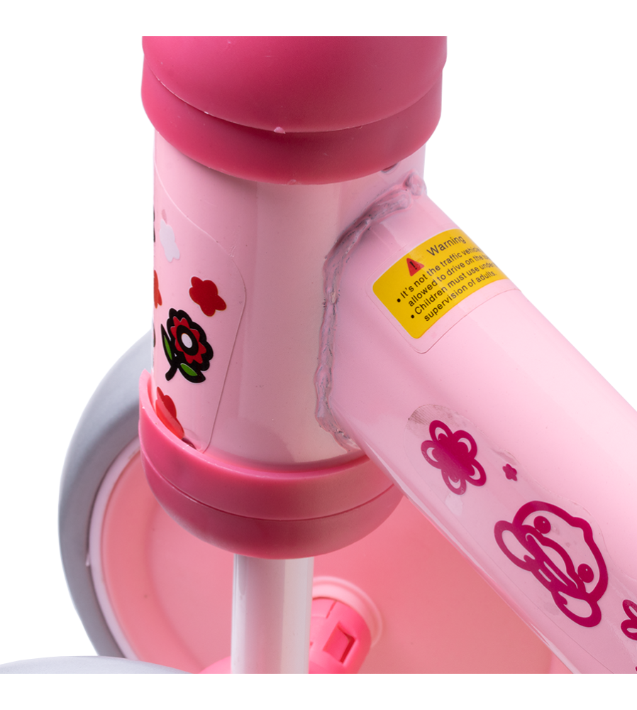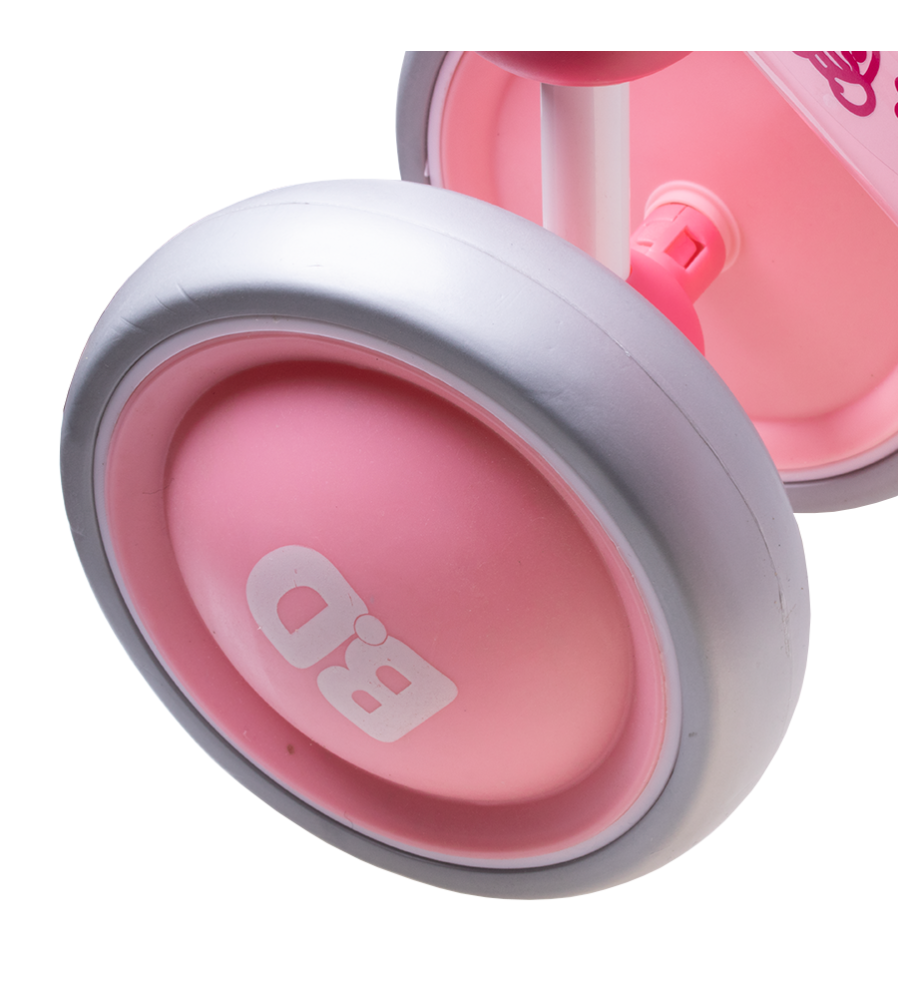 Bicicleta are roti din spuma EVA, care sunt antiderapante si sigure pentru copil, deoarece sunt netoxice.