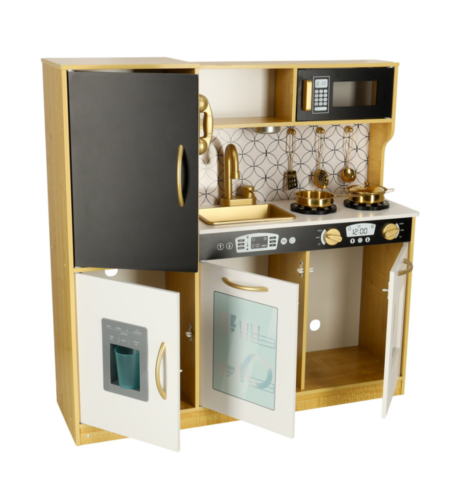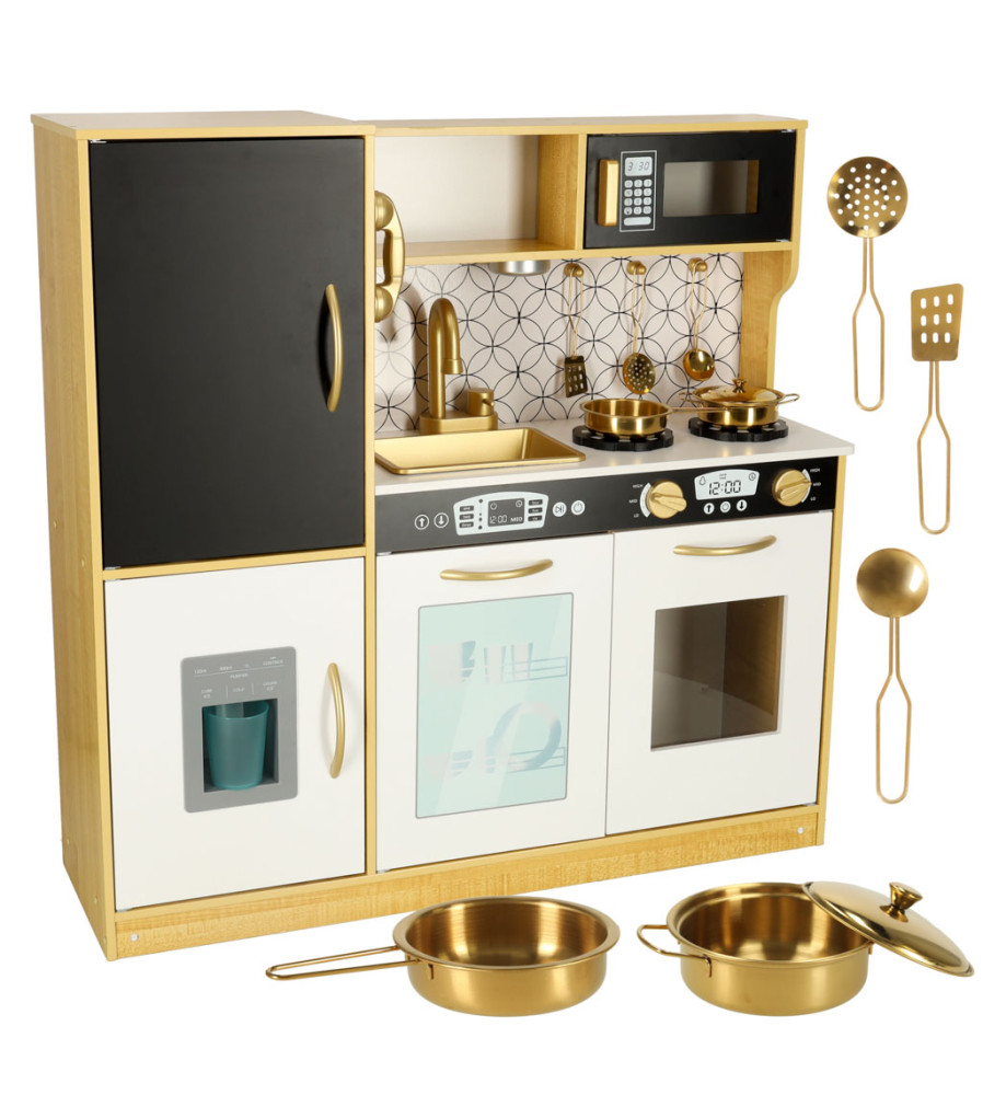 Aceasta bucatarie de jucarie este ideala pentru a dezvolta imaginatia si abilitatile sociale ale copiilor, incurajandu-i sa creeze scenarii complexe de joc. Jocurile de rol ajuta la imbunatatirea abilitatilor motorii fine si ii invata pe copii concepte de baza despre gatit si organizare.