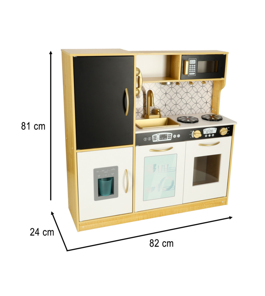 Cu dimensiunile de 82 cm x 24 cm x 81 cm, bucataria este compacta, oferind spatiu suficient pentru mai multe activitati fara a ocupa mult loc in camera copiilor. Inaltimea blatului de 46 cm este ideala pentru copii cu varsta de peste 3 ani, permitandu-le sa se joace confortabil.