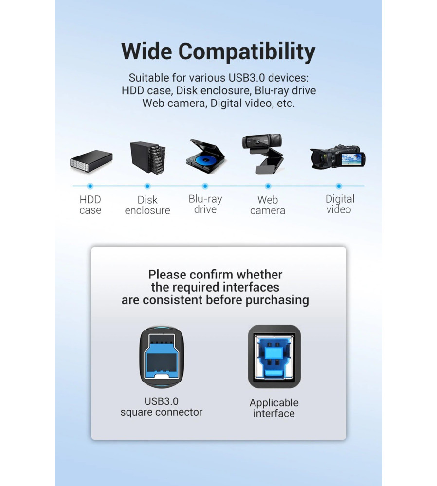 Vă rugăm să rețineți! Acesta nu este un cablu de imprimantă standard (USB B). USB B 3.0 este diferit de interfața standard USB 2.0 B.