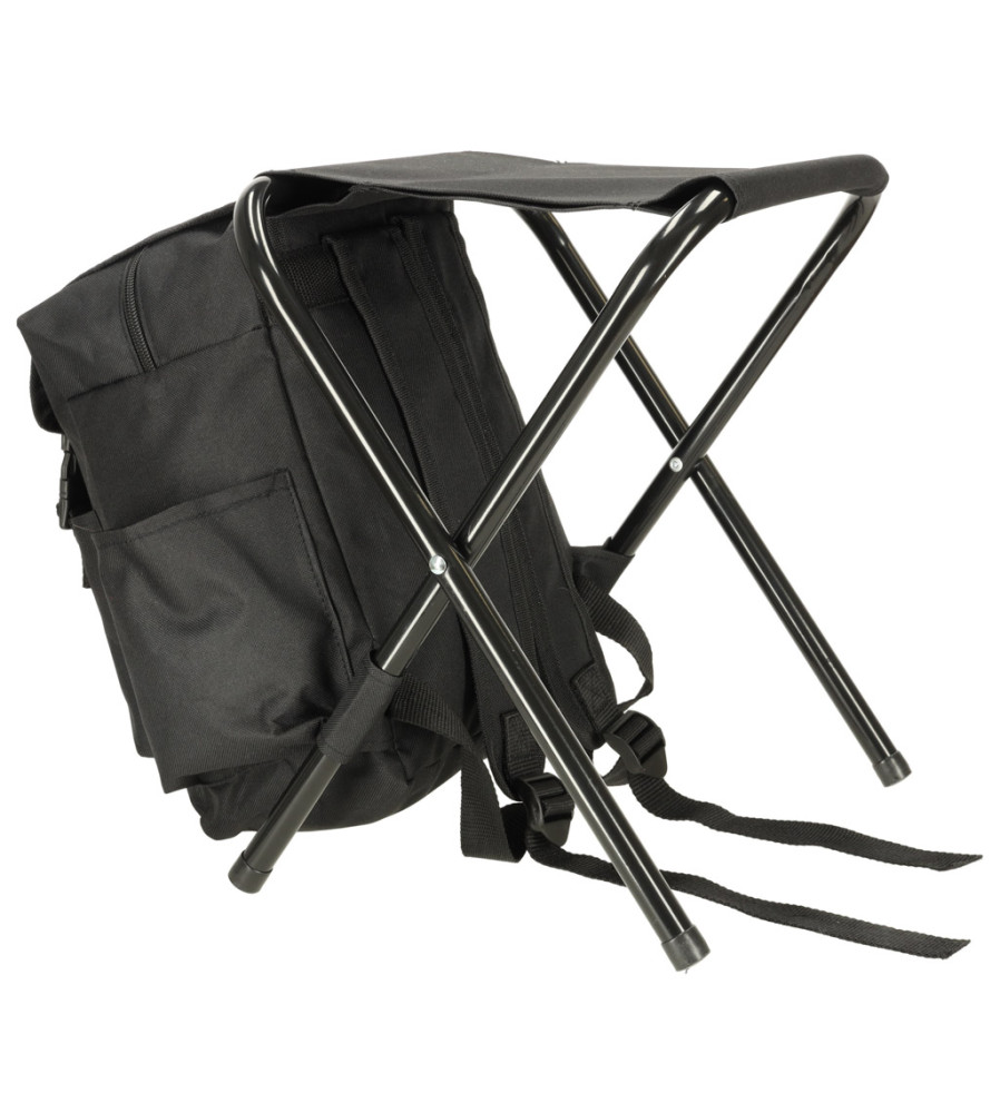 Scaun de pescuit, pliabil, fara spatar, cu rucasac incorporat, negru