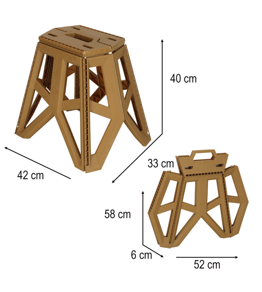 Scaun pliabil de camping din plastic, bej, 33 x 42 x 40 cm