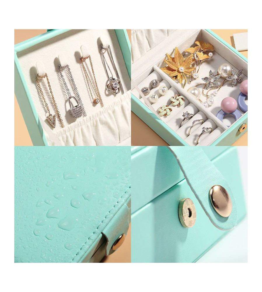 Cutie eleganta pentru bijuterii, ceasuri sau accesorii, 20 de compartimente, oglinda si inchidere cu cheie culoare roz deschis