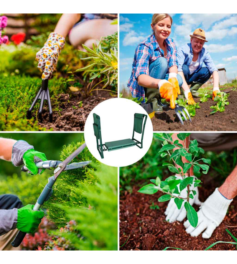 Îngenunchierul de grădină este o opțiune ideală pentru orice pasionat de grădinărit. Va face ca lucrările precum plivitul sau plantarea să fie mai puțin solicitate asupra articulațiilor. În plus, protejează hainele împotriva murdăriei. Suporturile laterale ale genunchierului facilitează ridicarea în picioare, ceea ce este util în special pentru persoanele cu mobilitate redusă. În plus, îngenunchierul poate fi transformat într-un scaun confortabil, oferind astfel o odihnă confortabilă în timpul grădinăritului. Setul include, de asemenea, două pungi care pot fi montate pe genunchier și folosite pentru depozitarea uneltelor de grădinărit. Datorită capacității sale de pliere, genunchierul este ușor de depozitat.