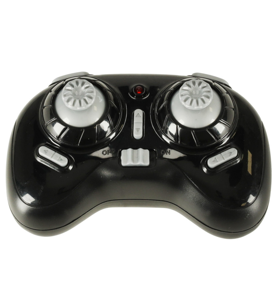 Drona este controlată de un transmițător cu 4 canale de 2,4 GHz.