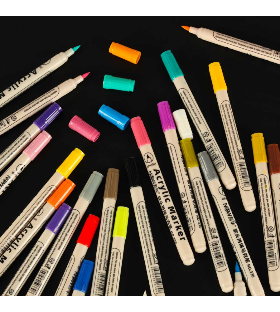 Set of 24 waterproof acrylic markers for painting on fabrics and other surfaces, multi-colored