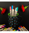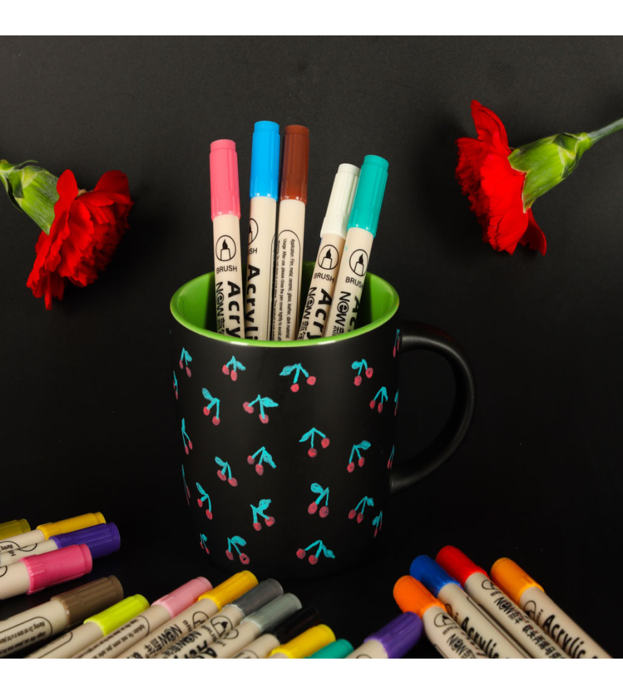The markers are perfect for coloring stones – both potted and larger, decorating the space around the house. You can use them to cut out stones, paint eggs, create a handmade photo frame or decorate a piggy bank or flower pot. They are also perfect for creating a unique T-shirt with your favorite hero or abstract design. A mug for grandma will bring joy to both her and the giver and will be a unique souvenir. Markers are also great for creating decorations for special occasions or handmade gifts for classmates.