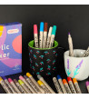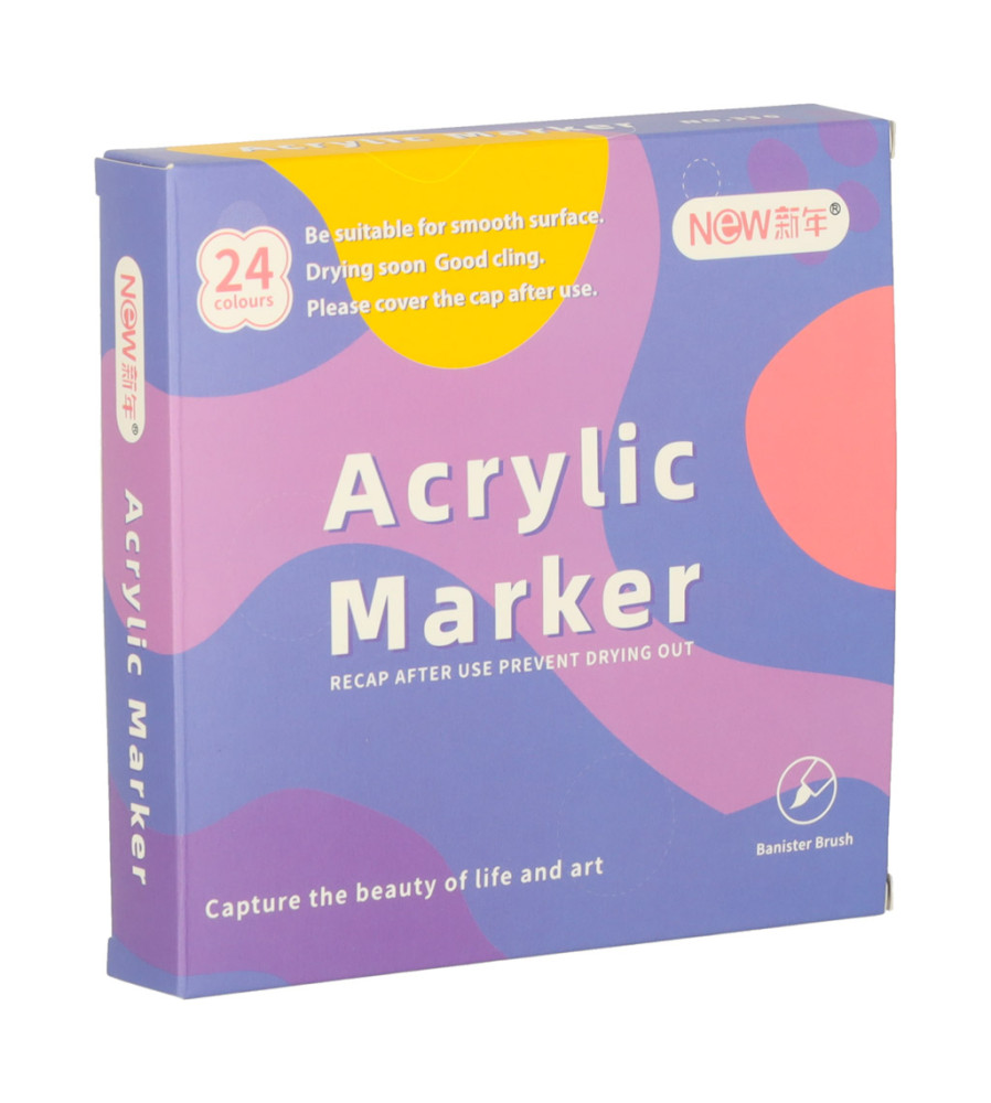 The 24-piece acrylic marker set is the perfect amount of colors for every child. The set includes markers with intense, vivid colors. It also includes two metallic acrylic markers: gold and silver and the classic, essential black acrylic marker. What characterizes these markers is their high pigmentation and smooth creamy consistency.