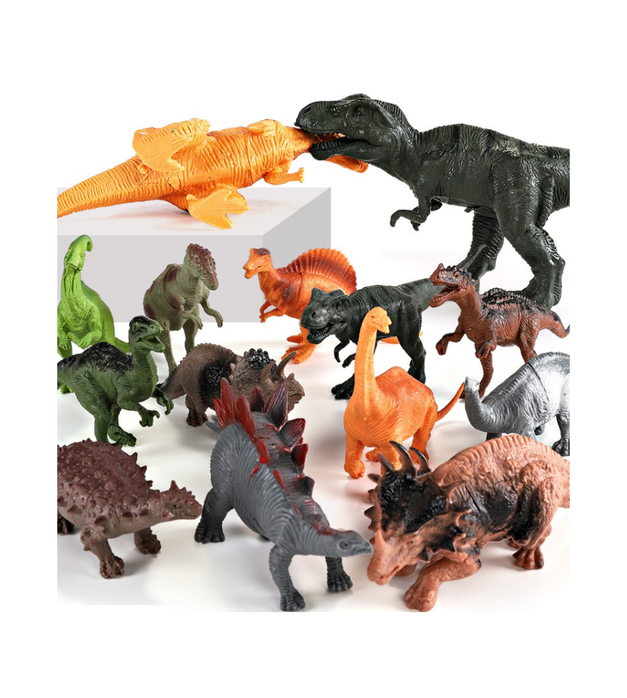 Set 48 de figurine din plastic, animale salbatice, animale de la ferma, marine si dinozauri, multicolor