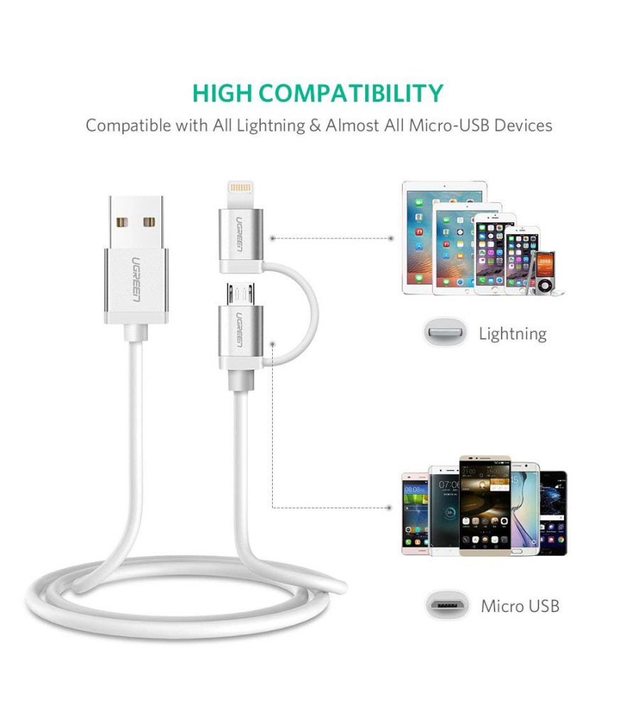 2 in 1 UGREEN Cablu Lightning USB A la Micro USB