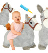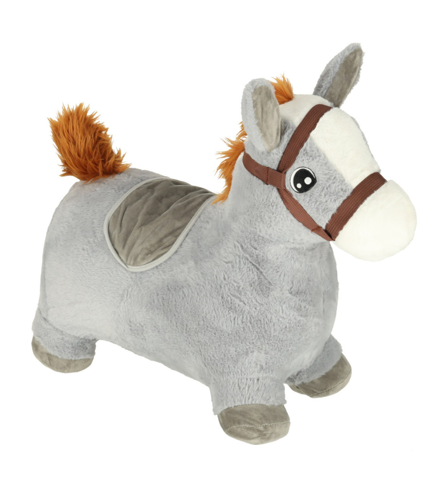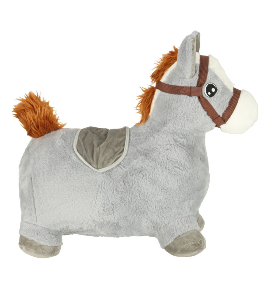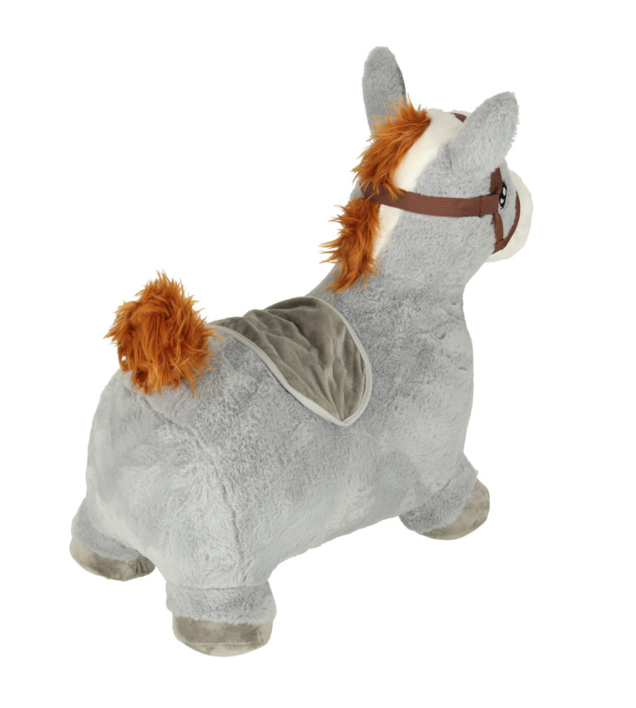 Căluțul este realizat din cauciuc rezistent, fiind acoperit integral cu pluș catifelat, plăcut la atingere. Datorită designului său stabil și ușor de utilizat, copiii pot sări, se pot juca de-a călăreții sau pot inventa nenumărate scenarii creative. În plus, este inclusă o pompă practică pentru umflare rapidă, astfel încât jucăria este gata de folosire în câteva momente.