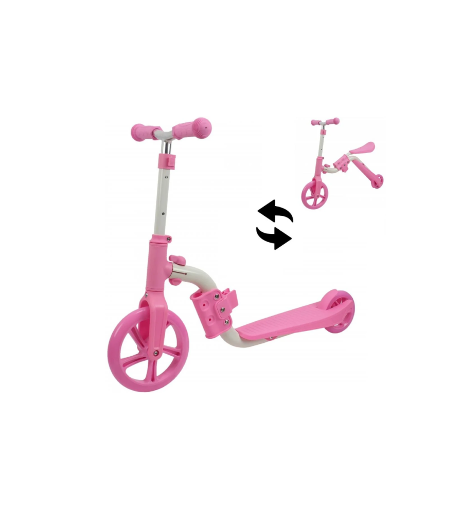 Visul fiecarui copil, deoarece produsul se transforma cu foarte mare usurinta din trotineta intr-o bicicleta fara pedale. Ambele variante contribuie la dezvoltarea armonioasa a musculaturii picioarelor, si al echilibrului copiilor.